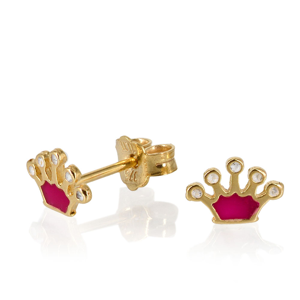Χρυσά Σκουλαρίκια καρφωτά 9 Καρατίων σε σχήμα κορώνα.