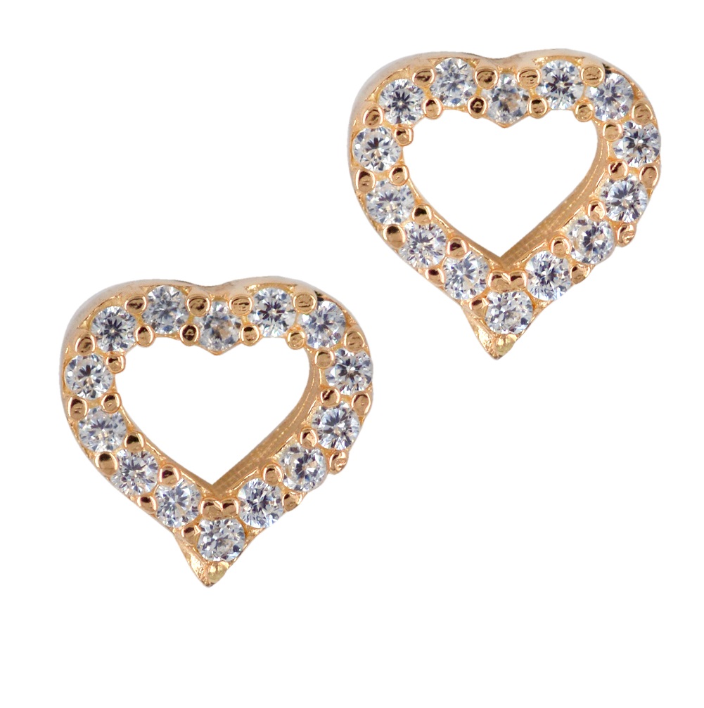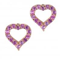 Χρυσά σκουλαρίκια καρφωτά 9 καρατίων, με σχέδιο καρδιά που την διακοσμούν ροζ ζιργκόν Swarovski.