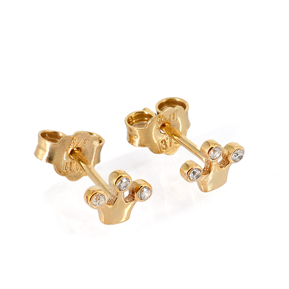 Χρυσά Σκουλαρίκια κορώνες 9 Καρατίων με πέτρες ζιργκόν.