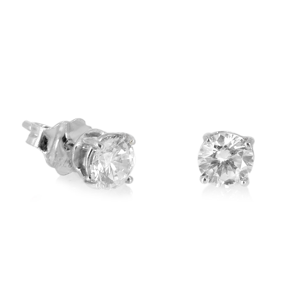 Λευκόχρυσα Σκουλαρίκια καρφωτά 9 Καρατίων με λευκή πέτρα ζιργκόν.