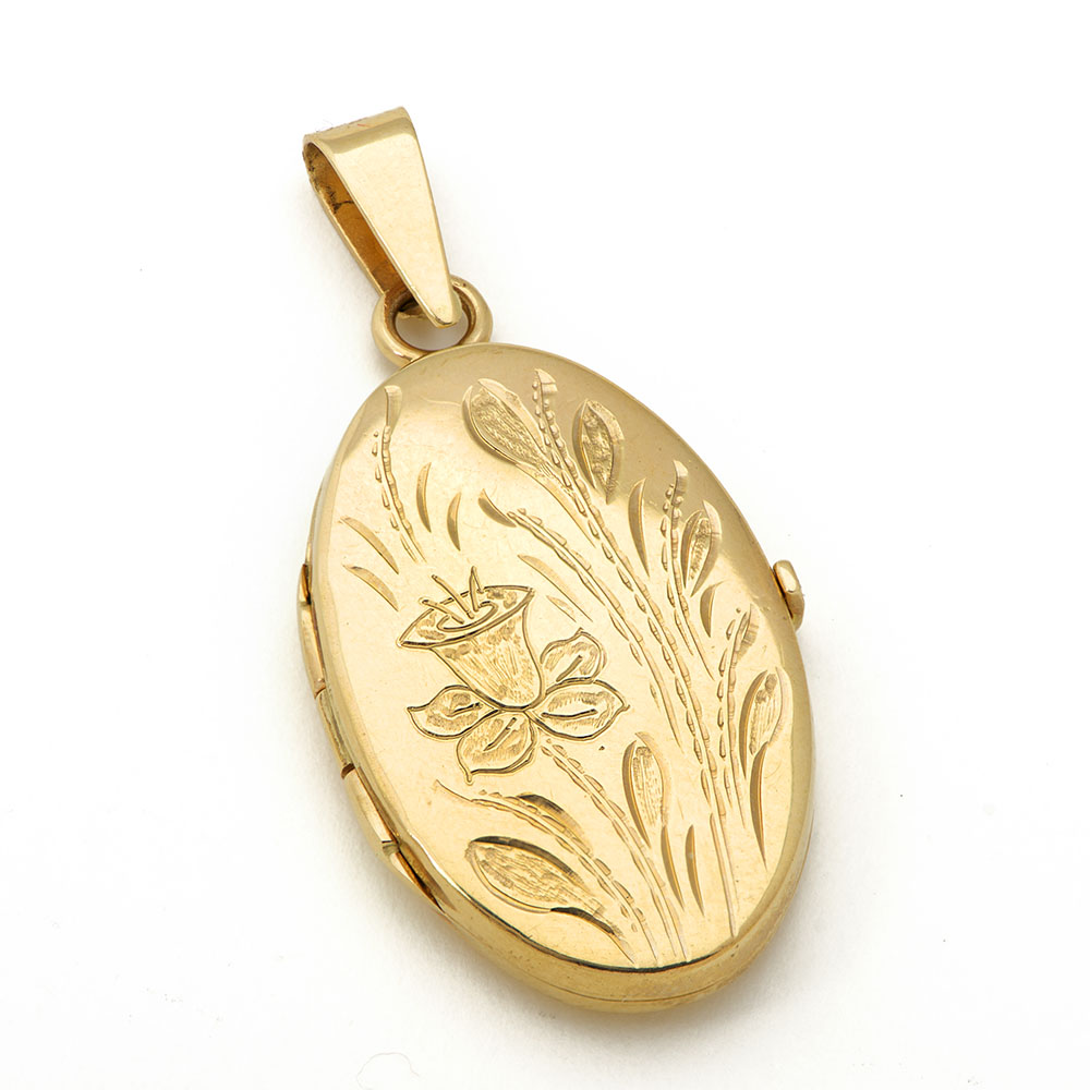 Χρυσό μενταγιόν Φωτογραφοθήκη 14 Καρατίων με ανάγλυφα λουλούδια.