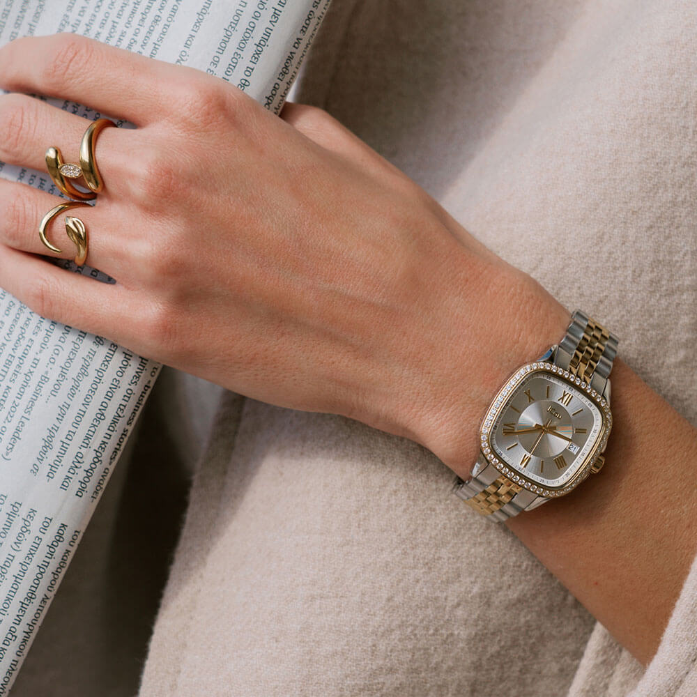Κάσα: Χρυσαφί ανοξείδωτο ατσάλι με πέτρες