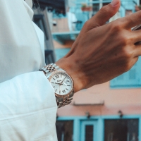 Καντράν: Ασημί με ροζ χρυσούς δείκτες