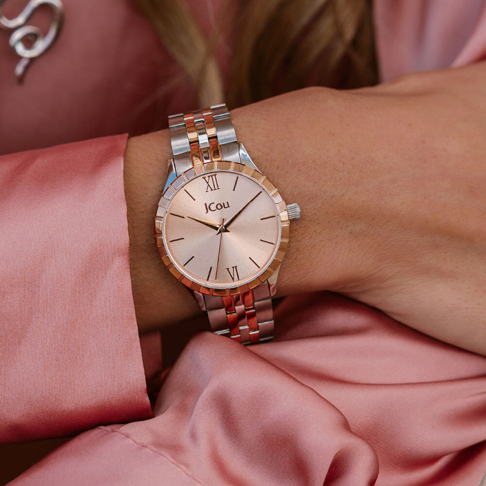 JCou Mystique, Women's Watch, Silver / Rose Gold Stainless Steel Bracelet JU19056-3