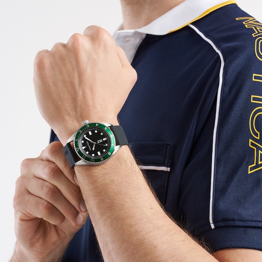 Nautica N38 Finn World, Men's Watch, Black Silicone Strap NAPFWF401