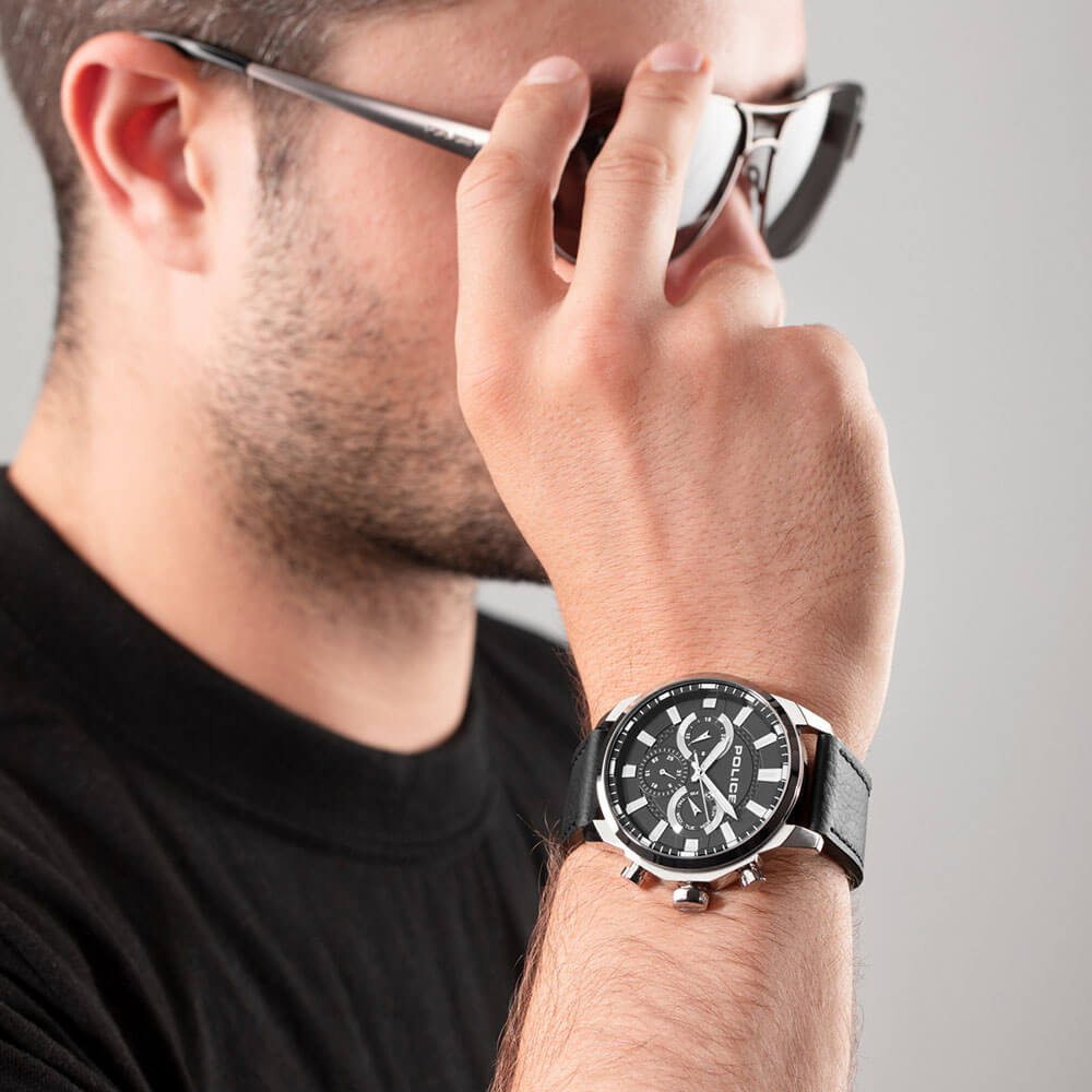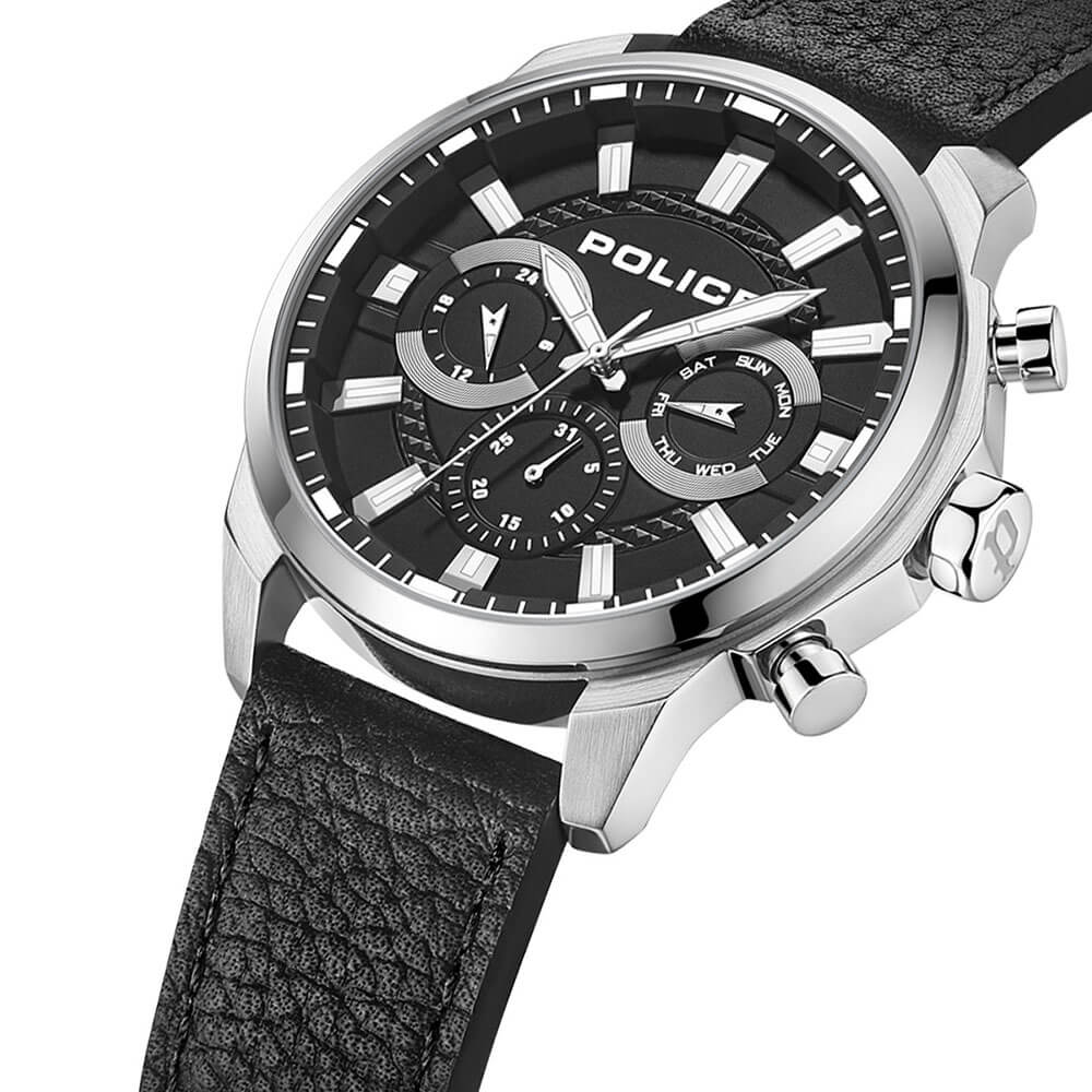 Police Menelik, Men's Watch, Black Leather Strap PEWJF2204207