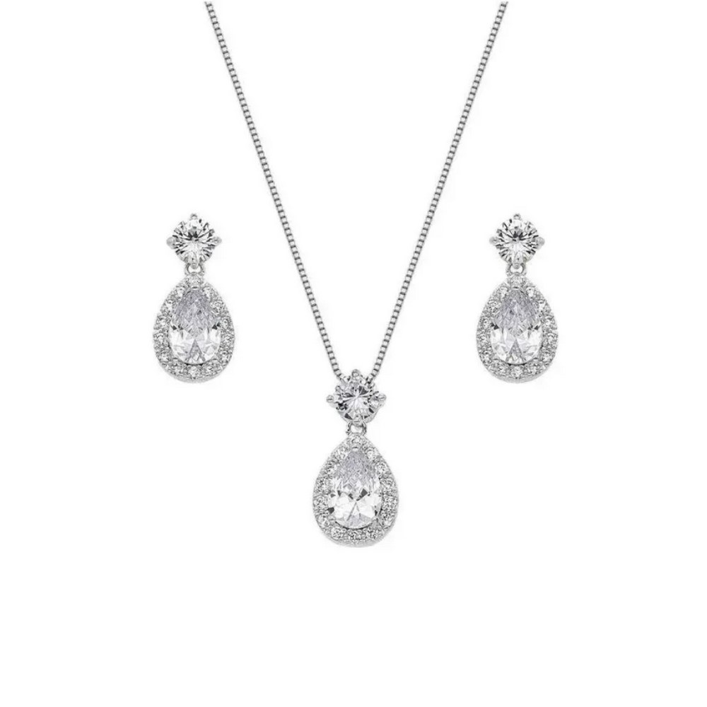 Σετ κοσμημάτων Gloria Hope, από ορείχαλκο με λευκές πέτρες ζιργκόν Swarovski σε ασημί χρώμα.