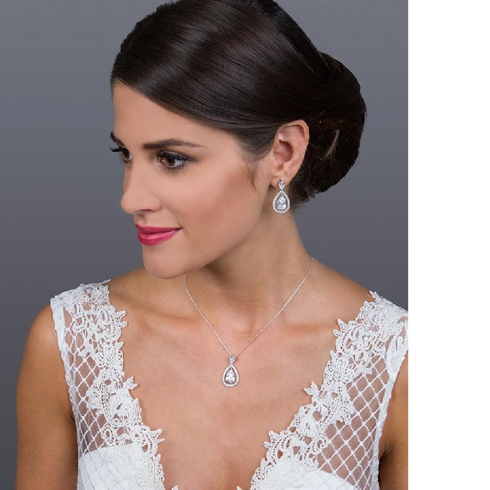 Σετ κοσμημάτων Gloria Hope, από ορείχαλκο με λευκές πέτρες ζιργκόν Swarovski σε ασημί χρώμα