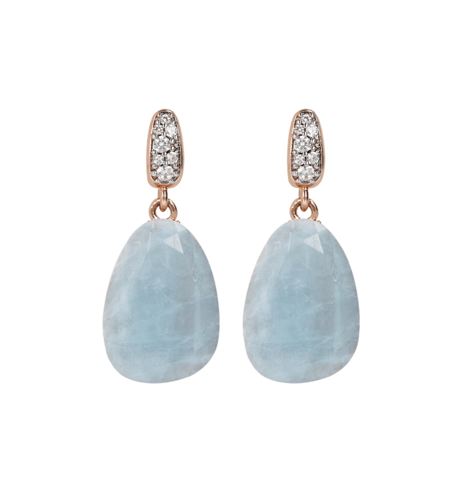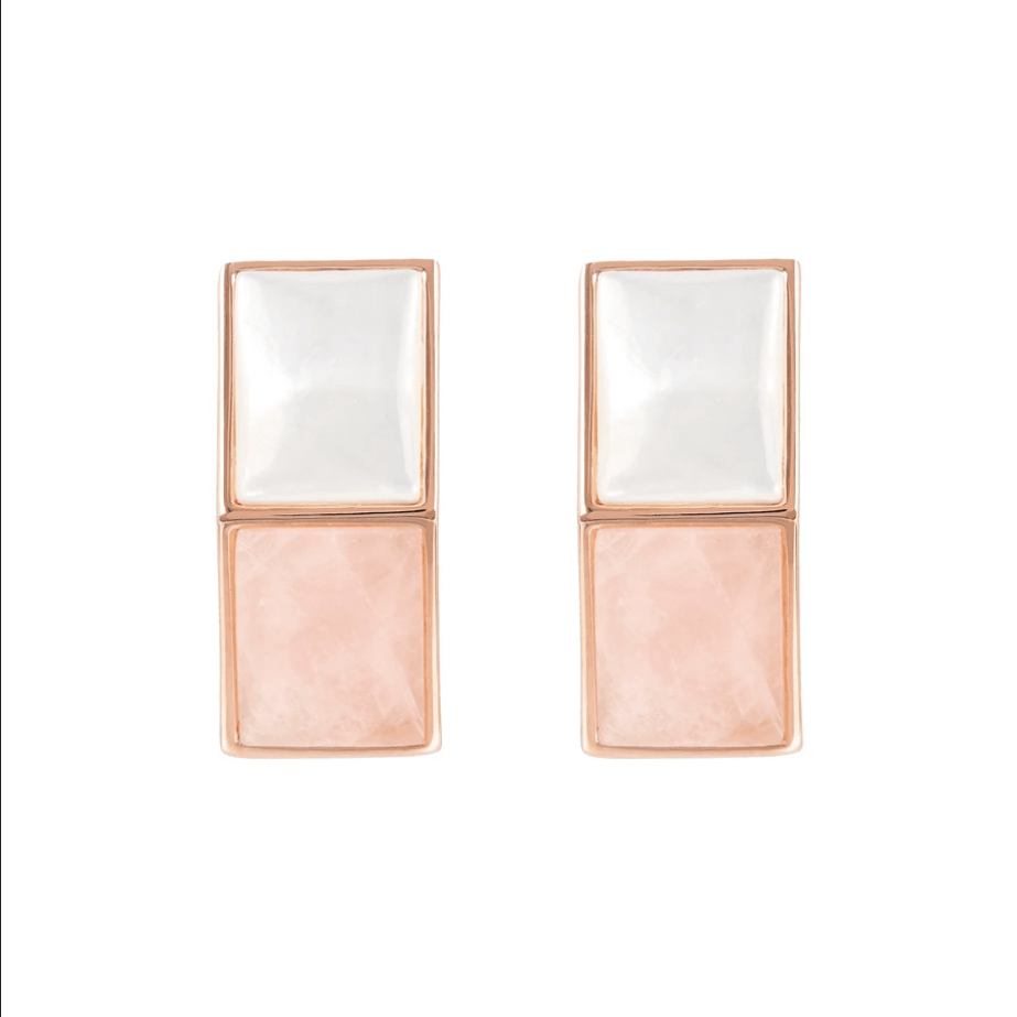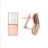 Σκουλαρίκια ορειχάλκινα, Bronzallure, με ροζ χρύσωμα 18K και πέτρες από λευκό φίλντισι και ροζ χαλαζία. Σχεδιασμένο και κατασκευασμένο στην Ιταλία, χωρίς νικέλιο και κάδμιο, υποαλλεργικό.