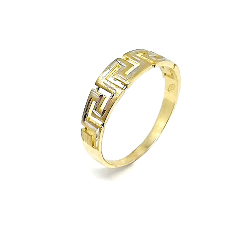 Χρυσό δαχτυλίδι 14 Καρατίων σε σχήμα μαίανδρου με λευκόχρυσες σατινέ λεπτομέρειες.