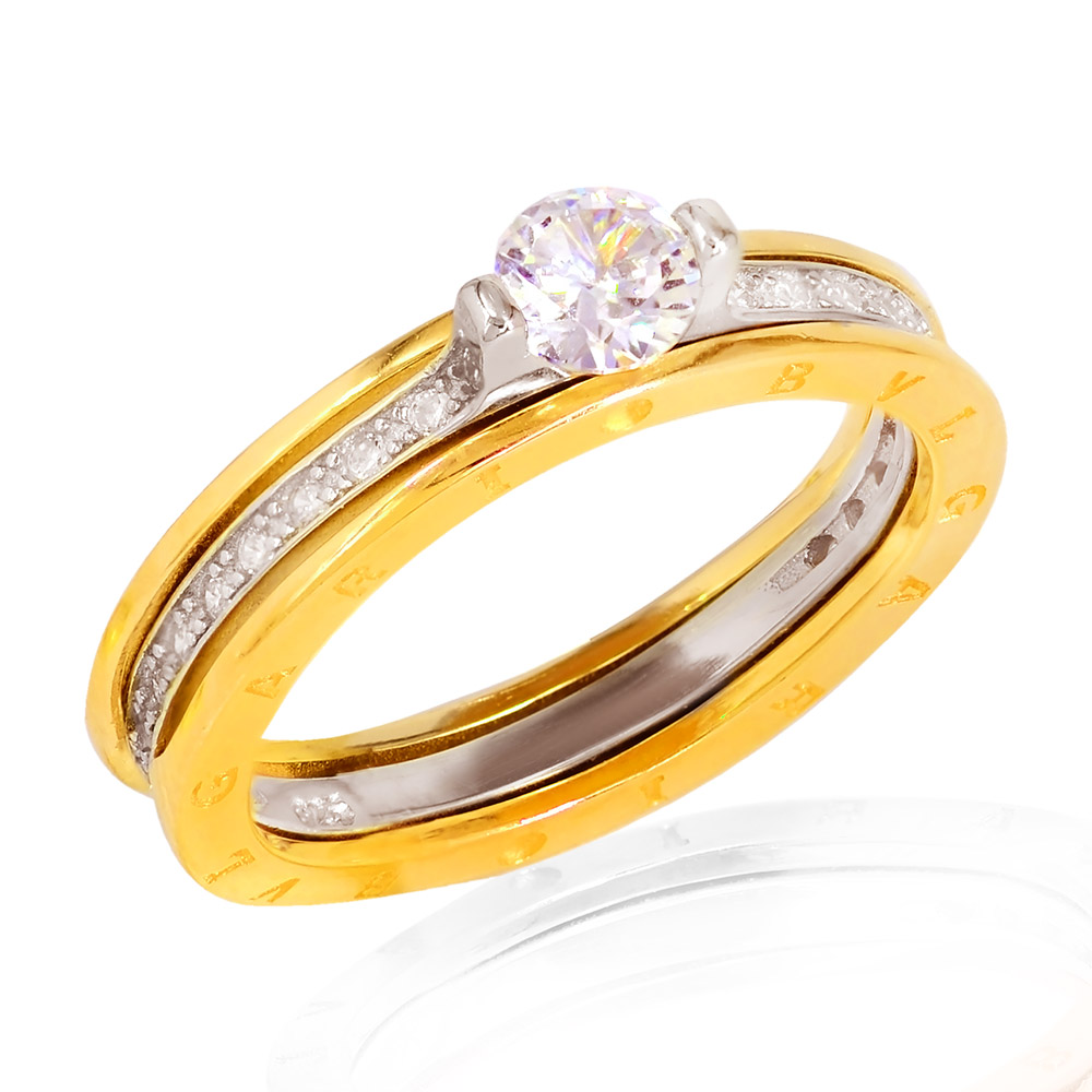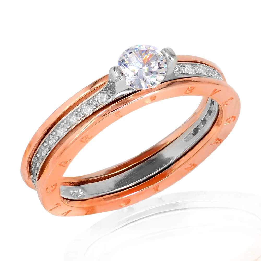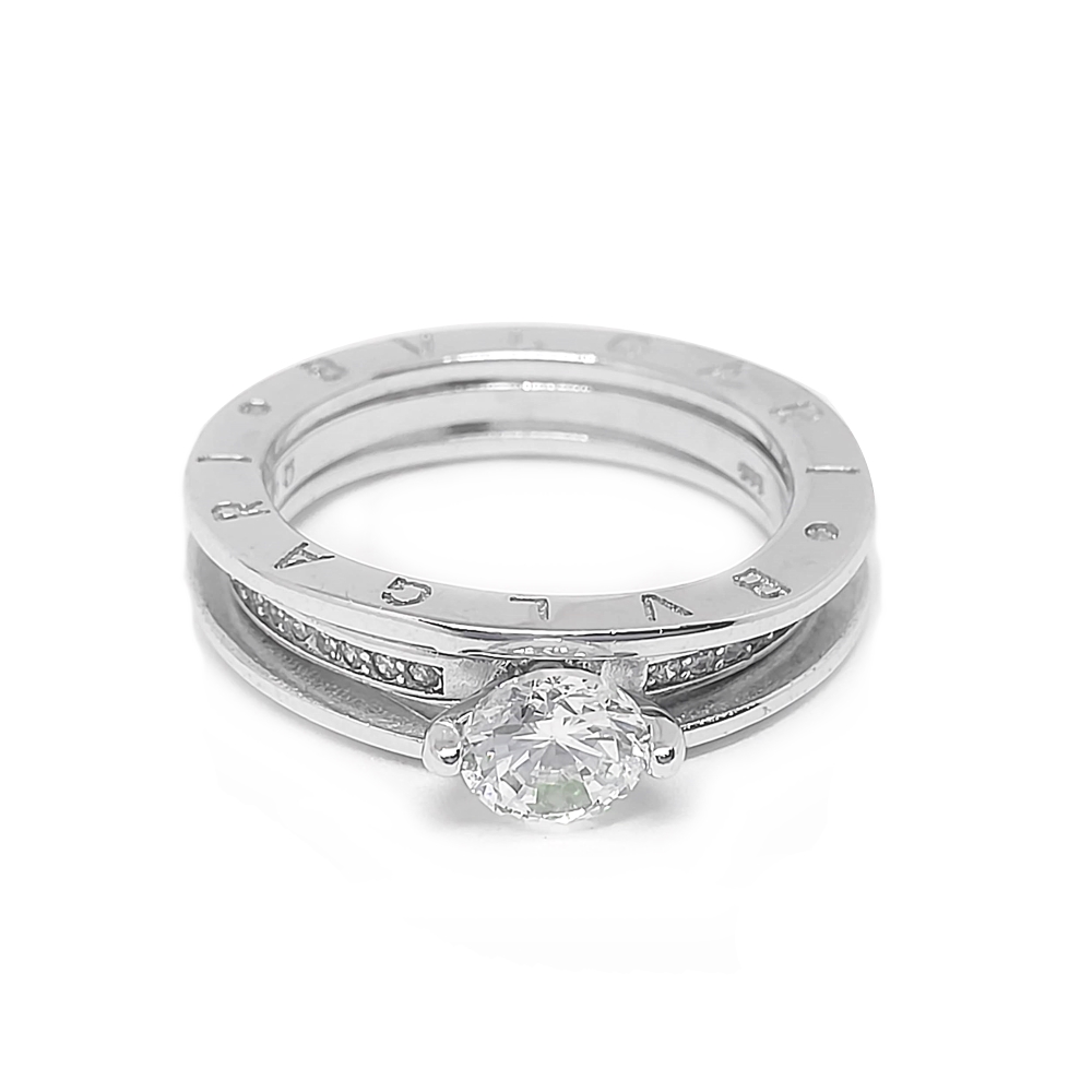 Ασημένιο μονόπετρο δαχτυλίδι αποτελούμενο απο δύο ξεχωριστά δακτυλίδια που ενσωματώνωνται το μονόπετρο μέσα στο εξωτερικό που το περικυκλώνει δεξιά και αριστερά , απο ασήμι 925°με λευκή κεντρική πέτρα ζιργκόν Swarovski και με μικρότερες λευκές πέτρες. Διατίθεται και με το εξωτερικό τμήμα σε επίχρυσο κίτρινο και ροζ χρώμα μετάλλου.