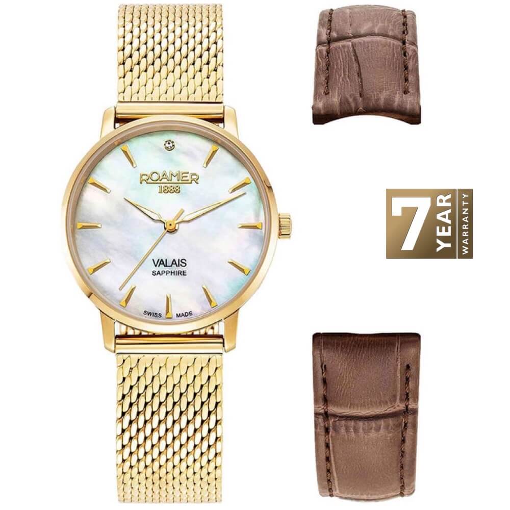 Roamer, Ladies Gift Set, Valais Diamonds Gold Stainless Steel Bracelet 989847-48-10-05