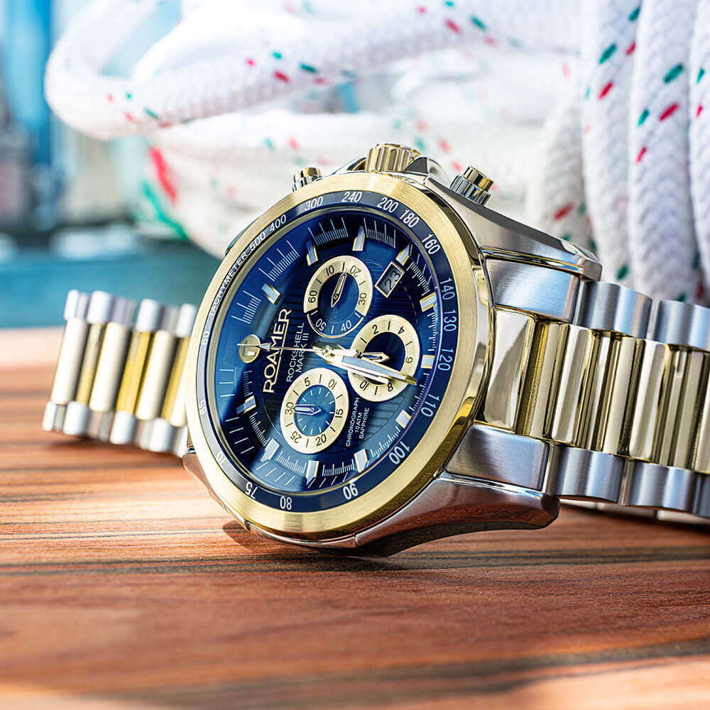 Roamer Rockshell Mark III Chrono, Men's Watch, Silver / Gold Stainless Steel Bracelet 220837-48-45-20