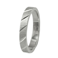 Λευκόχρυση βέρα γάμου και αρραβώνα 9 καρατίων και πλάτος 3mm, με πανέμοφο σχέδιο και εκλεπτισμένη ματ επεξεργασία με διαγώνια λουστρέ κοψίματα.