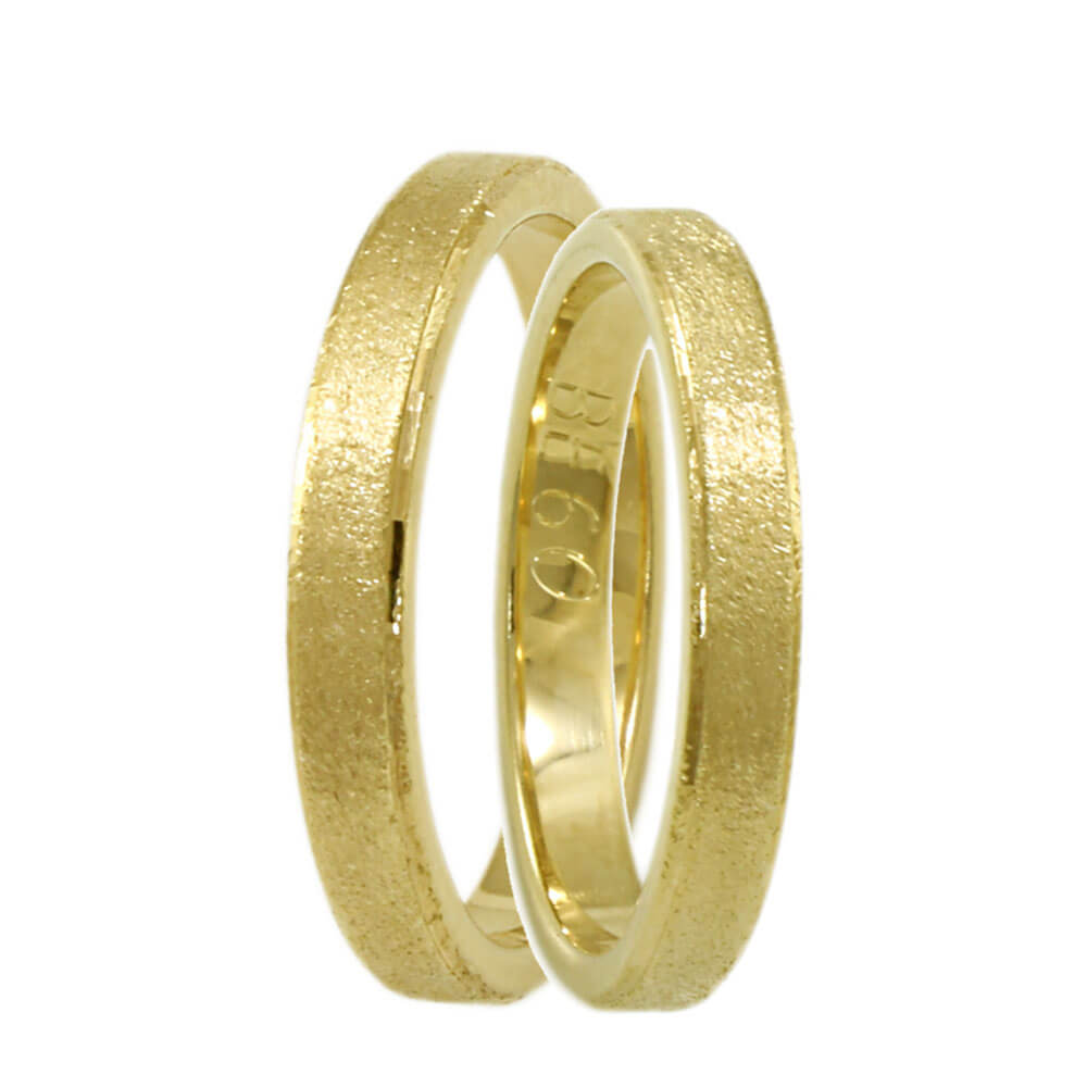 Χρυσή βέρα γάμου και αρραβώνα Matteo 9 καρατίων σε τετράγωνο σχέδιο, με ματ φινίρισμα και δύο λουστρέ κανάλια στα πλαϊνά στα 3mm πλάτος. Ένα εντυπωσιακό σχέδιο για την πιο ευτυχισμένη ημέρα της ζωής σας!