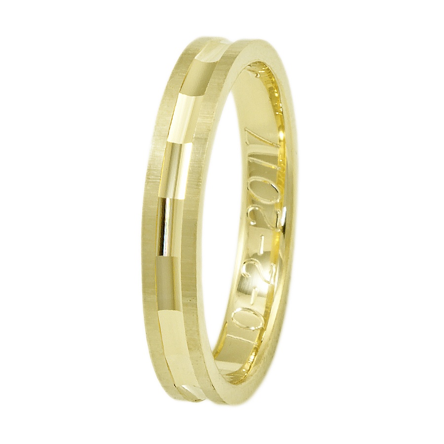 Χρυσή βέρα γάμου και αρραβώνα Matteo 9 καρατίων και 3mm πλάτος, σατινέ με ένα λουστρέ κανάλι στο κέντρο της. Μία βέρα που θα φοράτε καθημερινά.