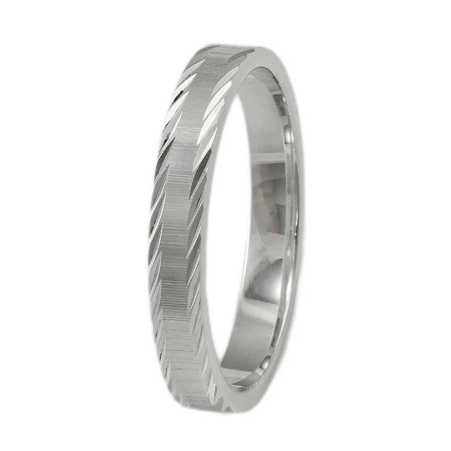 Λευκόχρυση βέρα γάμου και αρραβώνα 9 καρατίων και πλάτος 3mm, με πανέμορφο σχέδιο και εκλεπτυσμένη σατινέ επεξεργασία με διαγώνια λουστρέ κοψίματα στα πλαϊνά. Η βέρα αυτή θα σας ξετρελάνει.