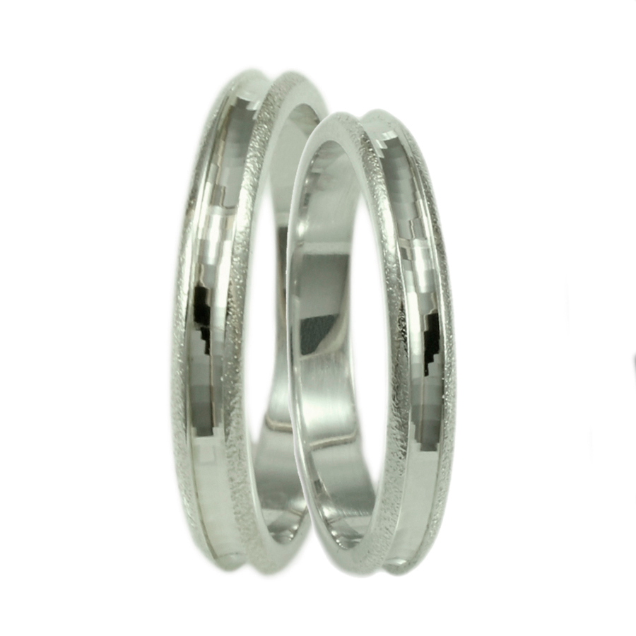 Λευκόχρυση βέρα γάμου και αρραβώνα Μatteo 9 καρατίων και 3mm πλάτος, σατινέ με ένα λουστρέ κανάλι στο κέντρο της. Μία βέρα που θα φοράτε καθημερινά.