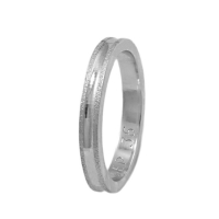 Λευκόχρυση βέρα γάμου και αρραβώνα Μatteo 9 καρατίων και 3mm πλάτος, με ένα γυαλιστερό κανάλι στο κέντρο της και δύο ματ γραμμές στα πλαϊνά.