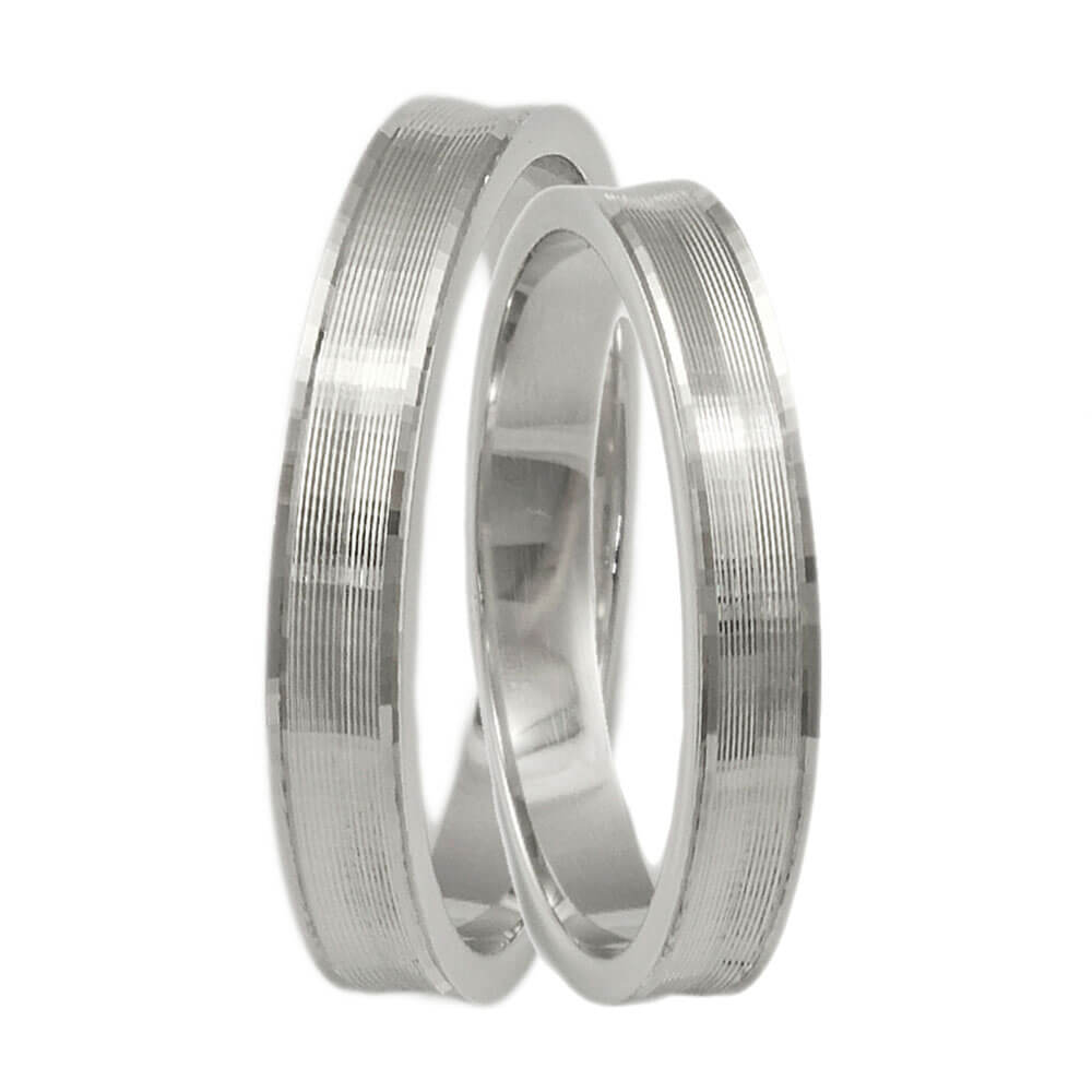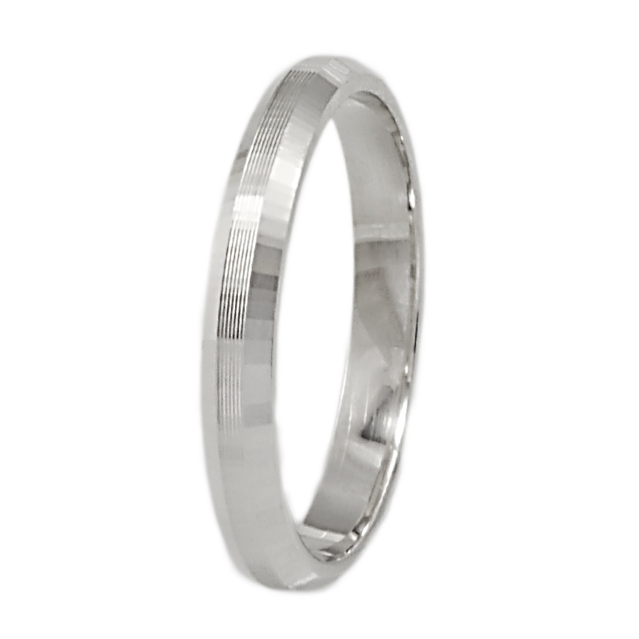 Υπέροχη βέρα γάμου και αρραβώνα από λευκόχρυσο 9 καρατίων, σε κλασική γραμμή, σατινέ με ιδιαίτερο σχέδιο στα πλαϊνά και πλάτος 3mm. Μία βέρα που συνδυάζει λάμψη και γοητεία.