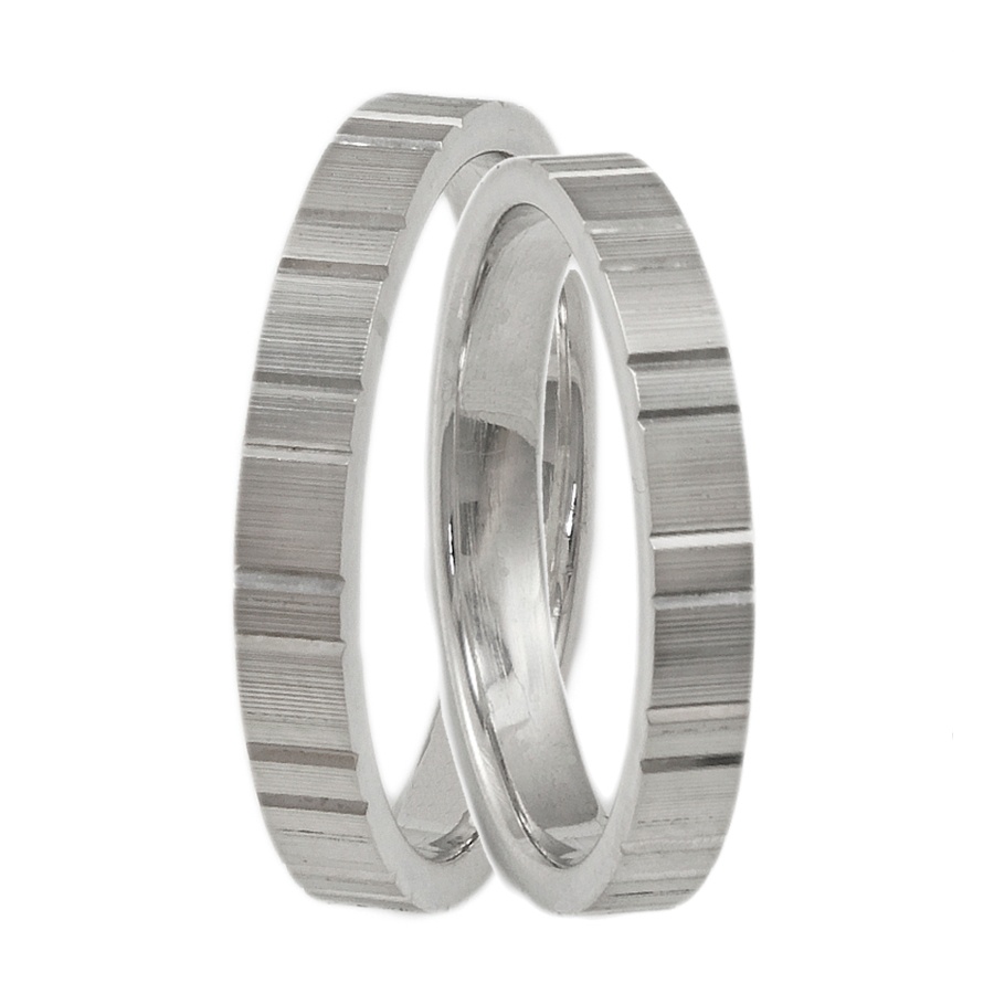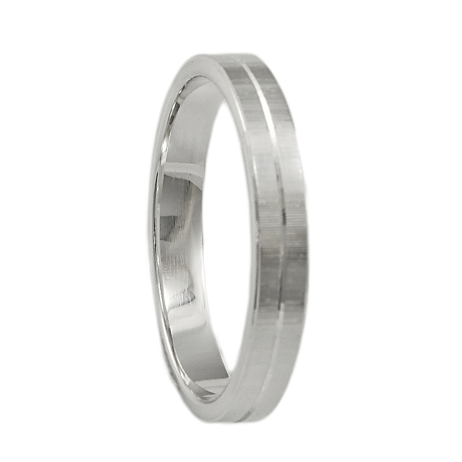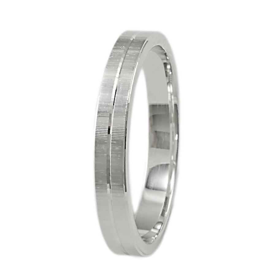 Λευκόχρυση βέρα γάμου και αρραβώνα 9 καρατίων στα 3mm, σε όμορφη σατινέ επεξεργασία και ένα λουστρέ κανάλι στο κέντρο της.