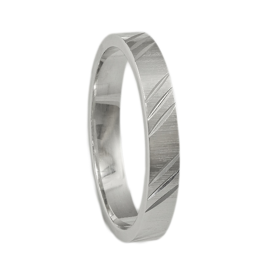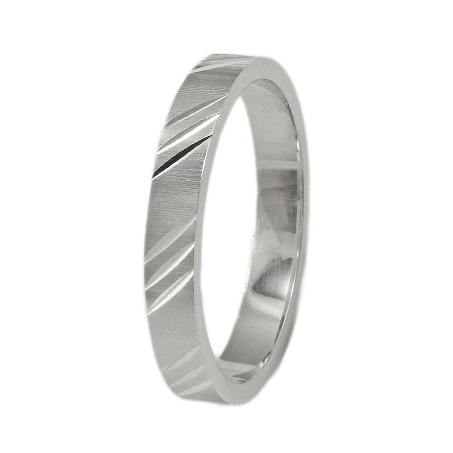 Λευκόχρυση βέρα γάμου και αρραβώνα 9 καρατίων και πλάτος 3mm, με πανέμορφο σχέδιο και εκλεπτυσμένη σατινέ επεξεργασία με διαγώνια λουστρέ κοψίματα.