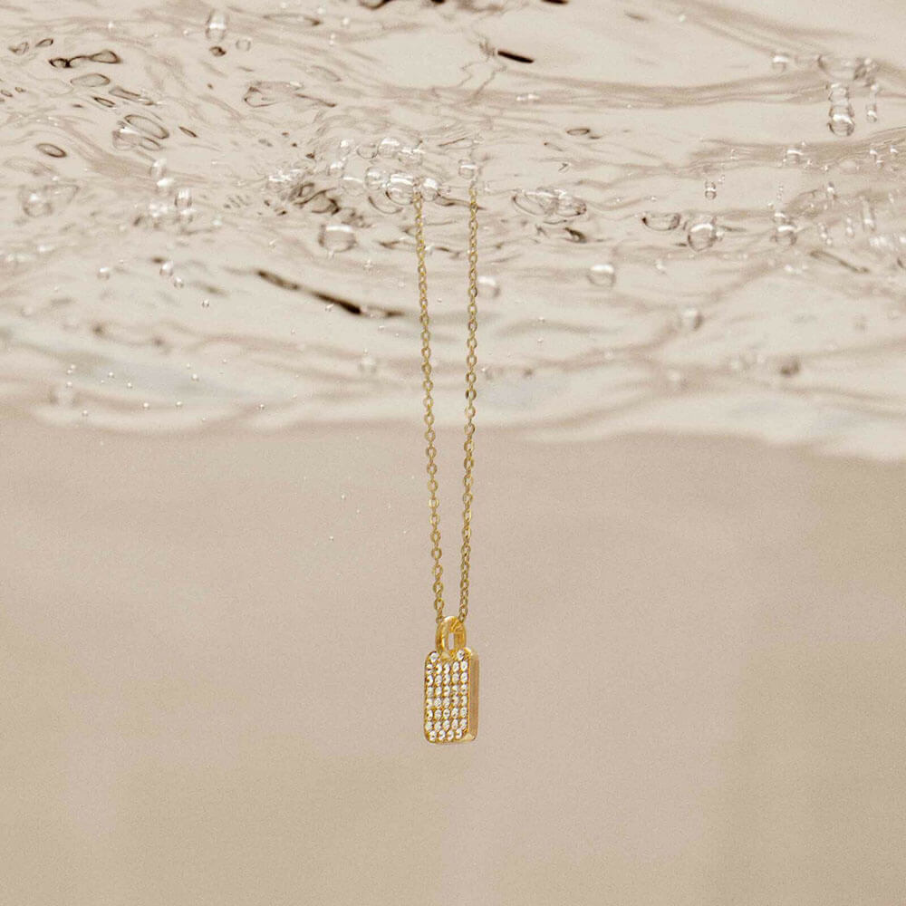 Ορειχάλκινο ευπροσάρμοστο κολιέ, με πέτρες από γυάλινο κρυσταλλο, Dansk, από τη συλλογή Illuminate Yourself, σειρά Shimmer, επιχρυσωμένο με χρυσό 14 καρατίων.