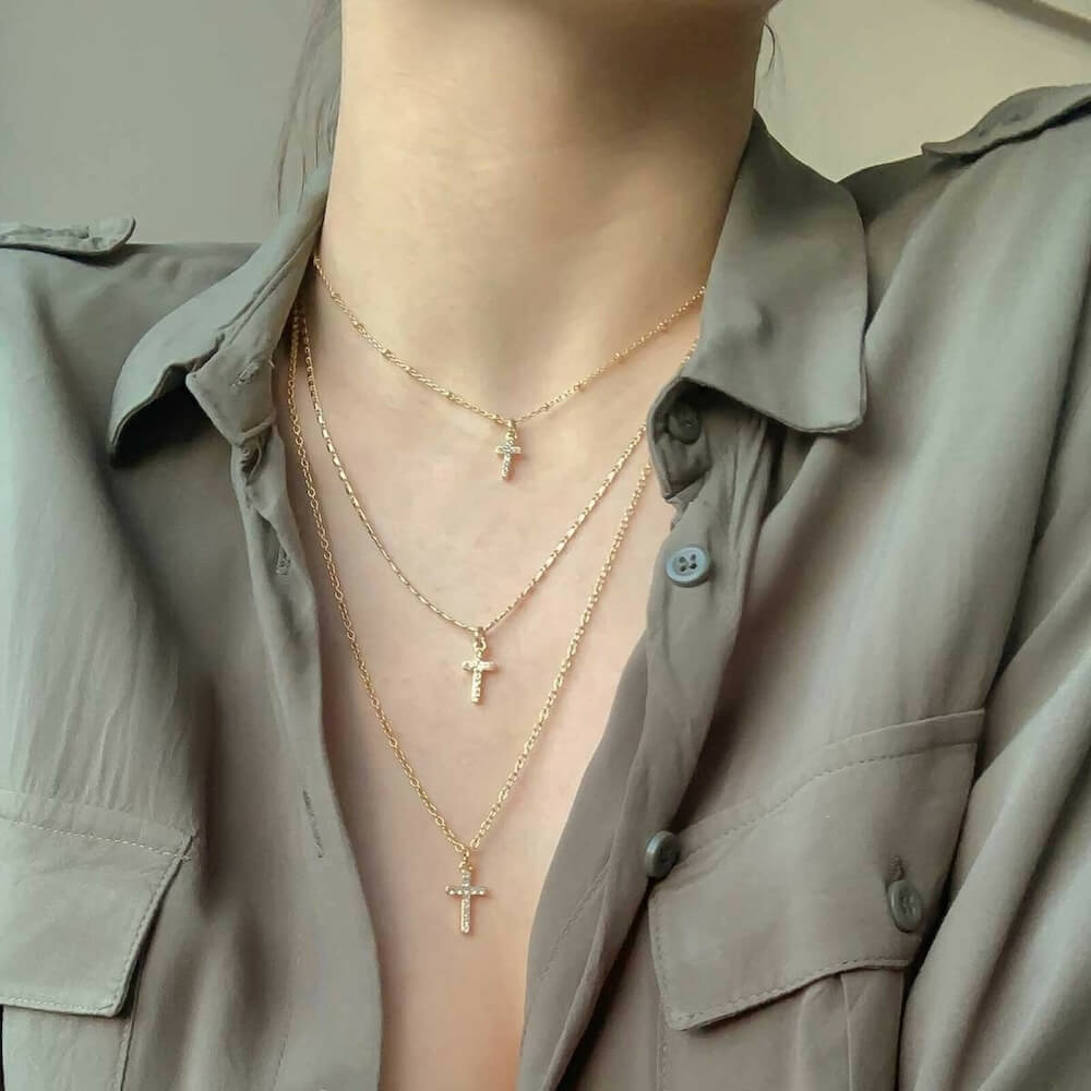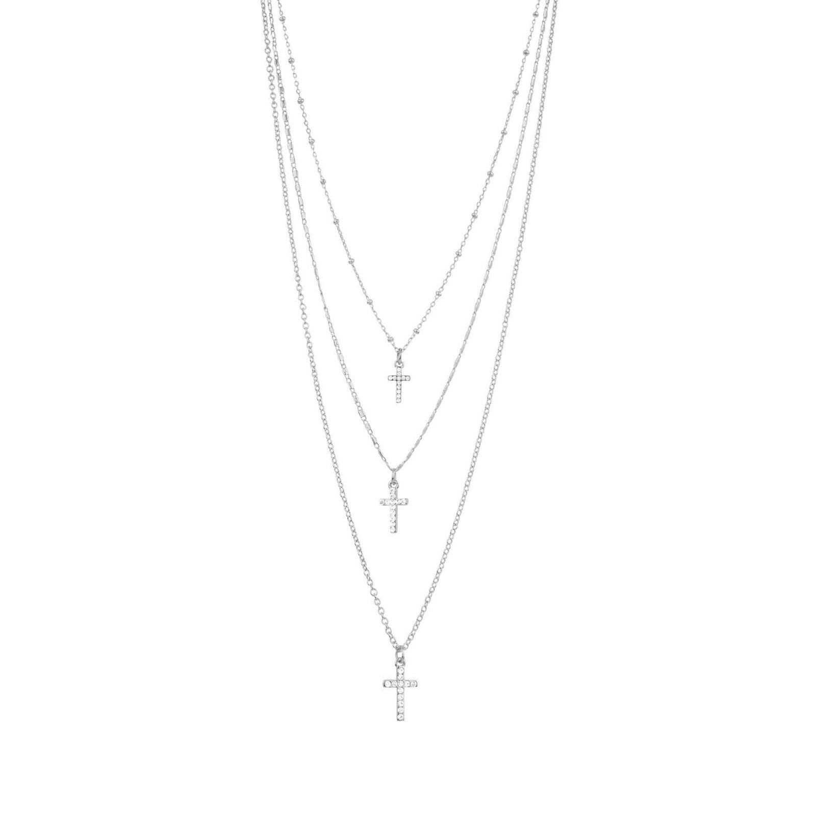 Ορειχάλκινο τριπλό κολιέ, με μοτίφ με πέτρες από γυάλινο κρυσταλλο, Dansk, από τη συλλογή Illuminate Yourself, σειρά Shimmer, επιπλατινωμένο με ασήμι. Διαθέτει κούμπωμα με πόρπη.