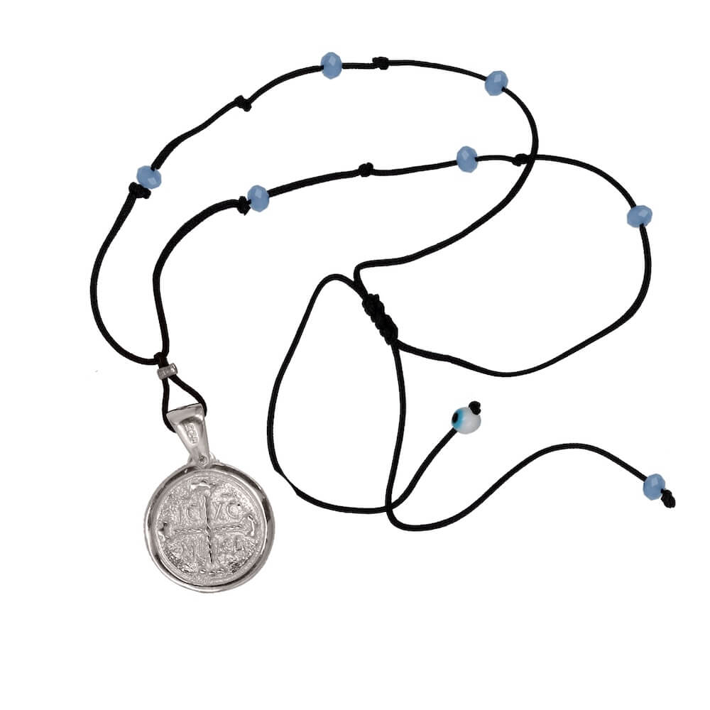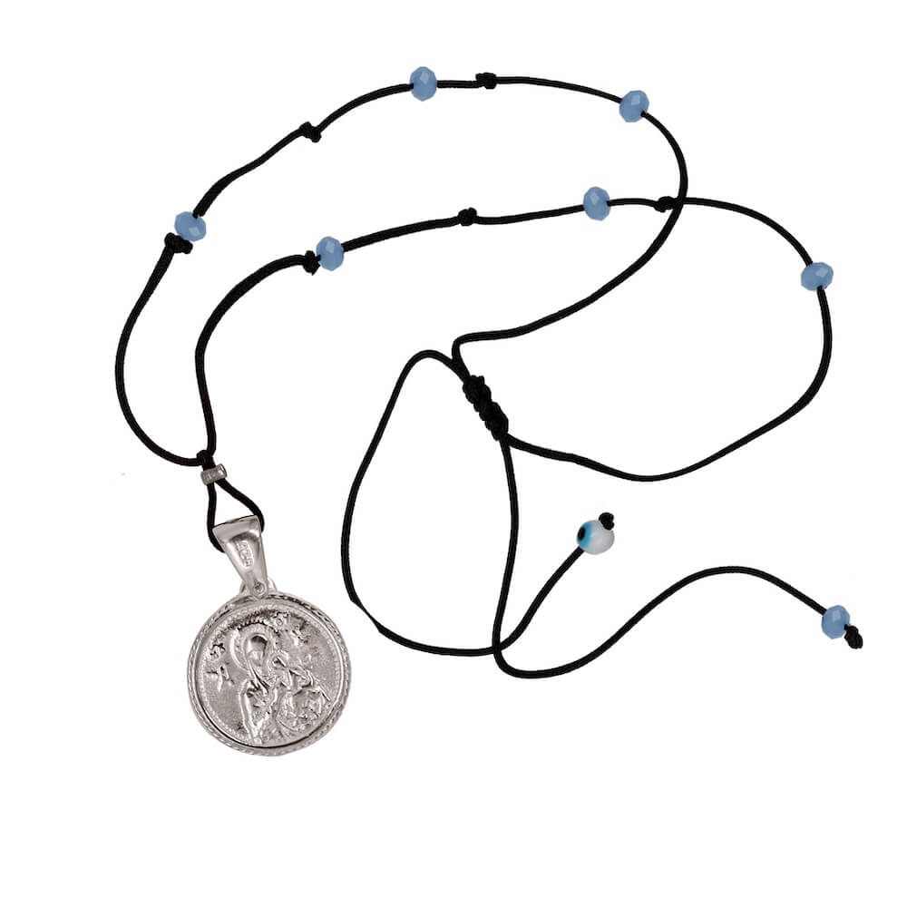 Ασημένιο φυλακτό αυτοκινήτου διπλής όψεως με την Παναγία και τον Ιησού Χριστό στην μία όψη και Ιησούς Χριστός Νικά στην άλλη όψη.