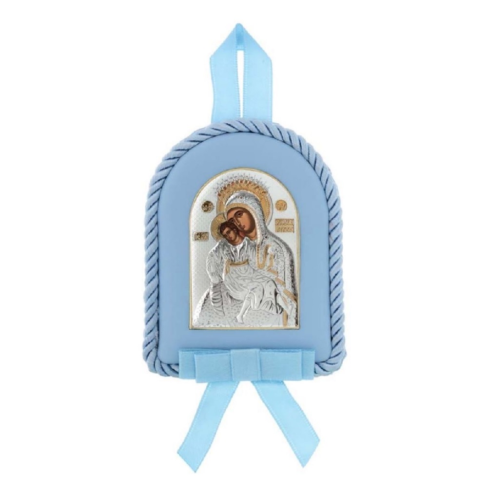 Ασημένια εικόνα κούνιας Παναγία και Χριστός για κορίτσι.