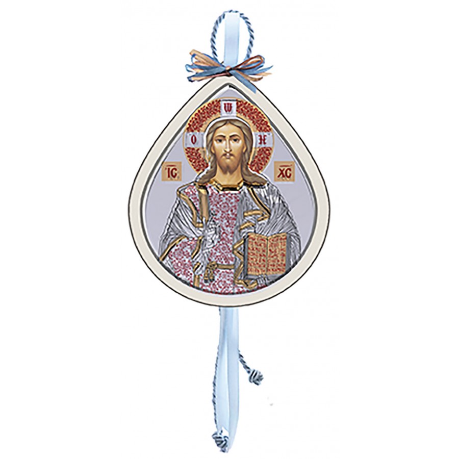 Ασημένια παιδική εικόνα κούνιας με τον Χριστό.