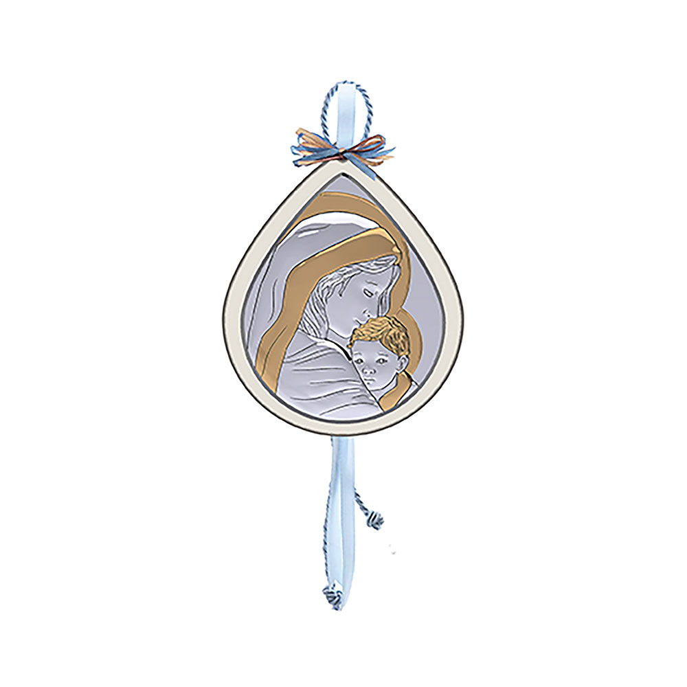 Ασημένια παιδική εικόνα κούνιας με την Παναγία την Αμόλυντο.