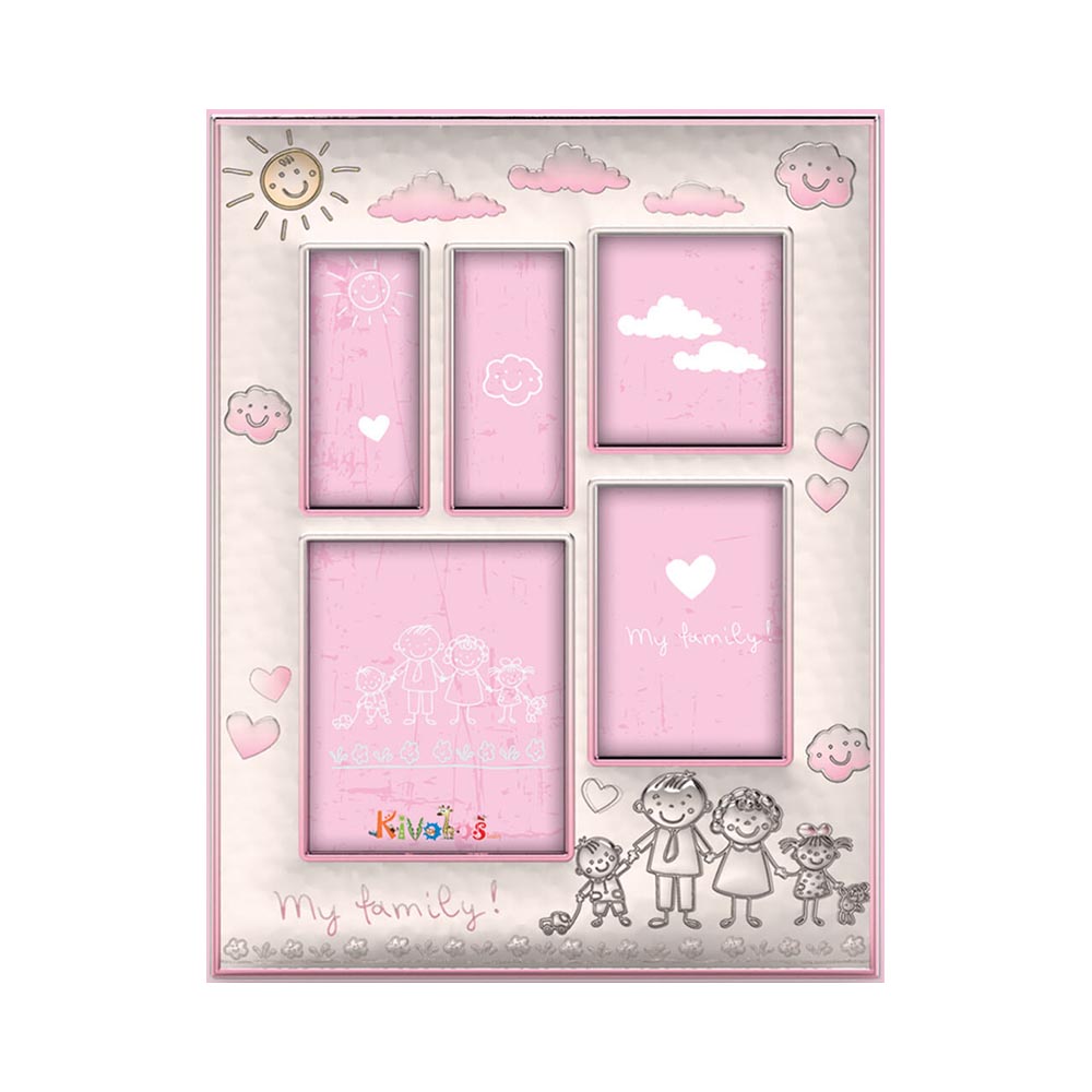 Slevori Ασημένια Παιδική Κορνίζα με σχέδιο Οικογένεια, 19.3X25.4, 9955-924AWM-R