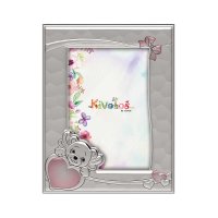 Slevori Ασημένια Παιδική Κορνίζα με Αρκουδάκι και Καρδούλα 925, 9X13, 9930-934AWM-R
