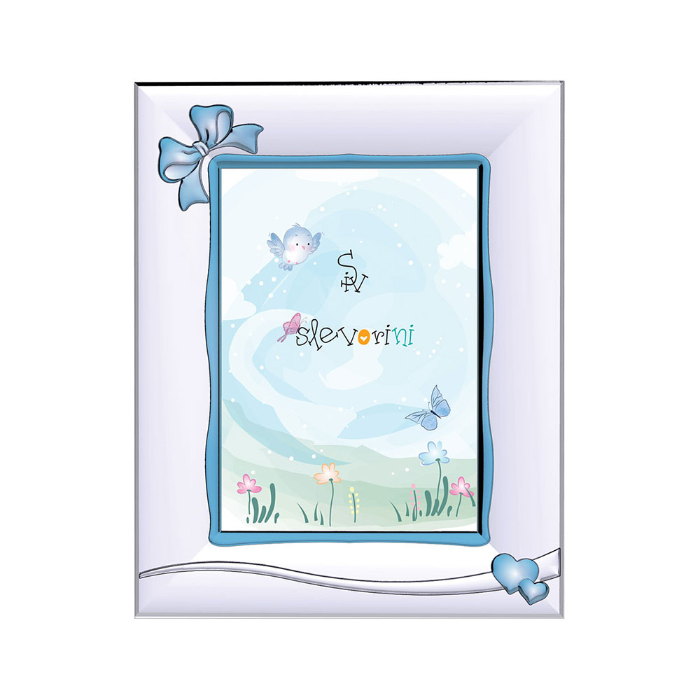 Ασημένια παιδική κορνίζα 925, Slevori, σε σιέλ χρώμα, με σχέδιο Φιογκάκι.