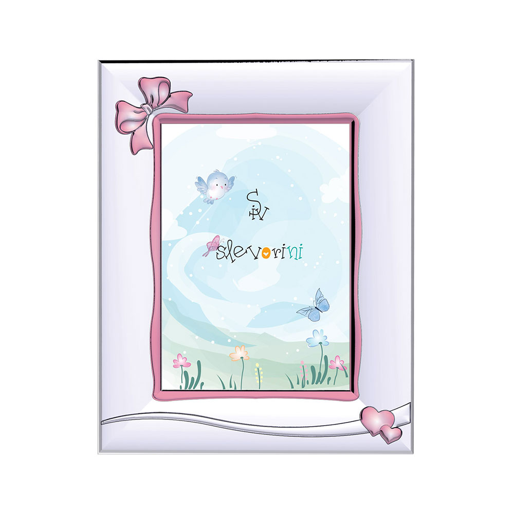 Slevori Ασημένια Παιδική Κορνίζα 925 με σχέδιο Φιογκάκι, 9X13, 9935-942AWM-R