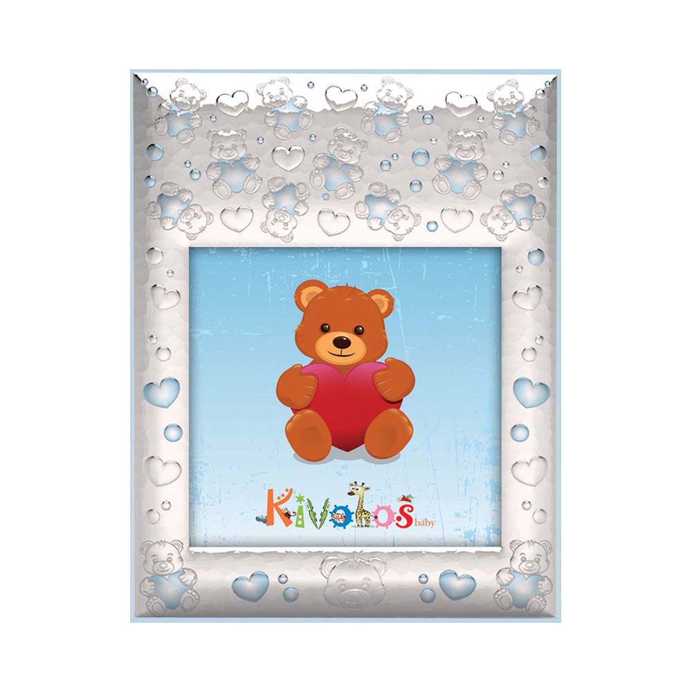 Slevori Ασημένια Παιδική Κορνίζα με Αρκουδάκι και Καρδούλες 925, 15X15, 9955-914AWM-B