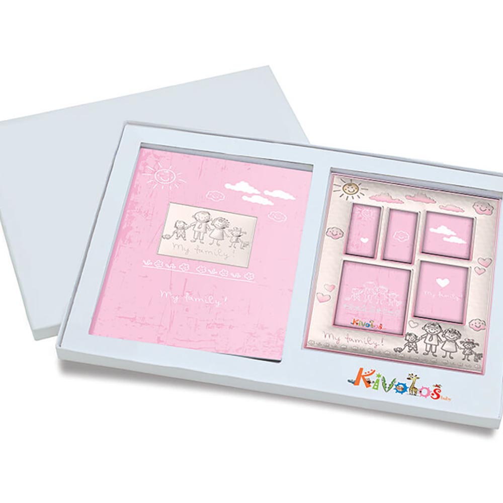 Slevori Ασημένια Παιδική Κορνίζα με Αλμπουμ με σχέδιο Οικογένεια,19,3X25, 9985-924AWM+AL-R