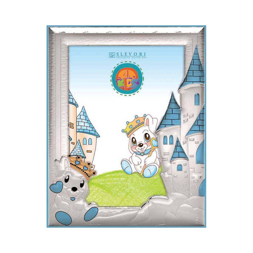 Slevori Ασημένια Παιδική Κορνίζα Με Κάστρο και Λαγουδάκι 13x18 9940-907AWM-R