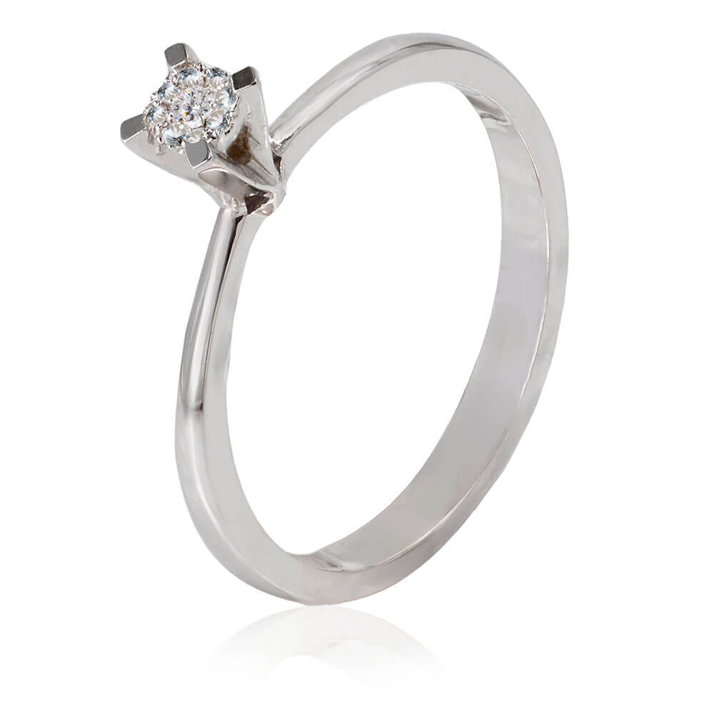 Λευκόχρυσο μονόπετρο 18 Καρατίων με διαμάντια.