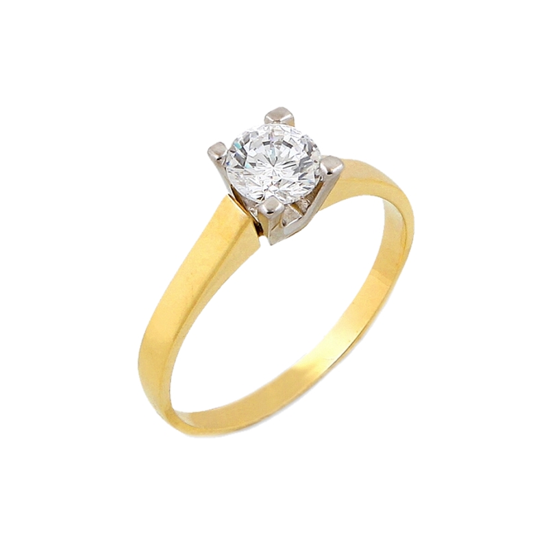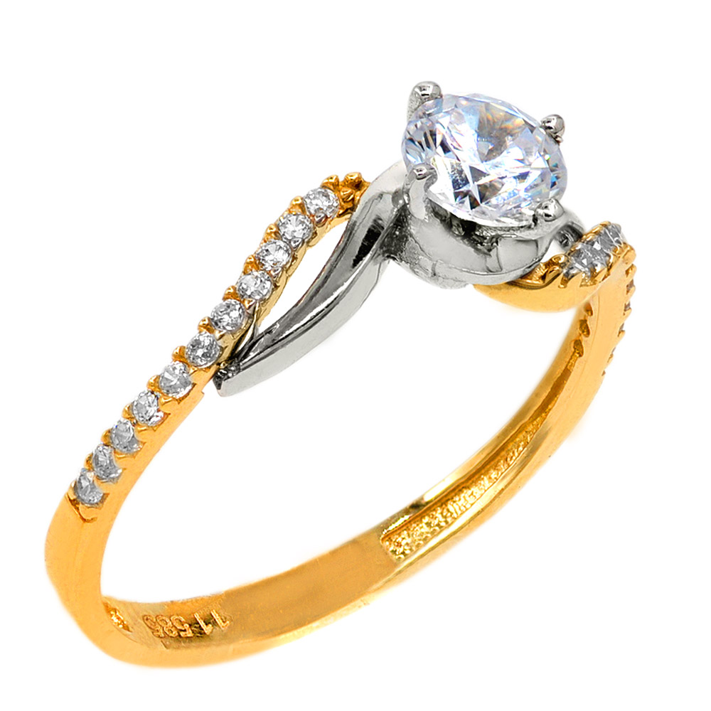 Μονόπετρο δαχτυλίδι κίτρινο, χρυσό 14 Καρατίων (585°) με λευκές πέτρες ζιργκόν Swarovski® και λευκόχρυσες λεπτομέρειες.