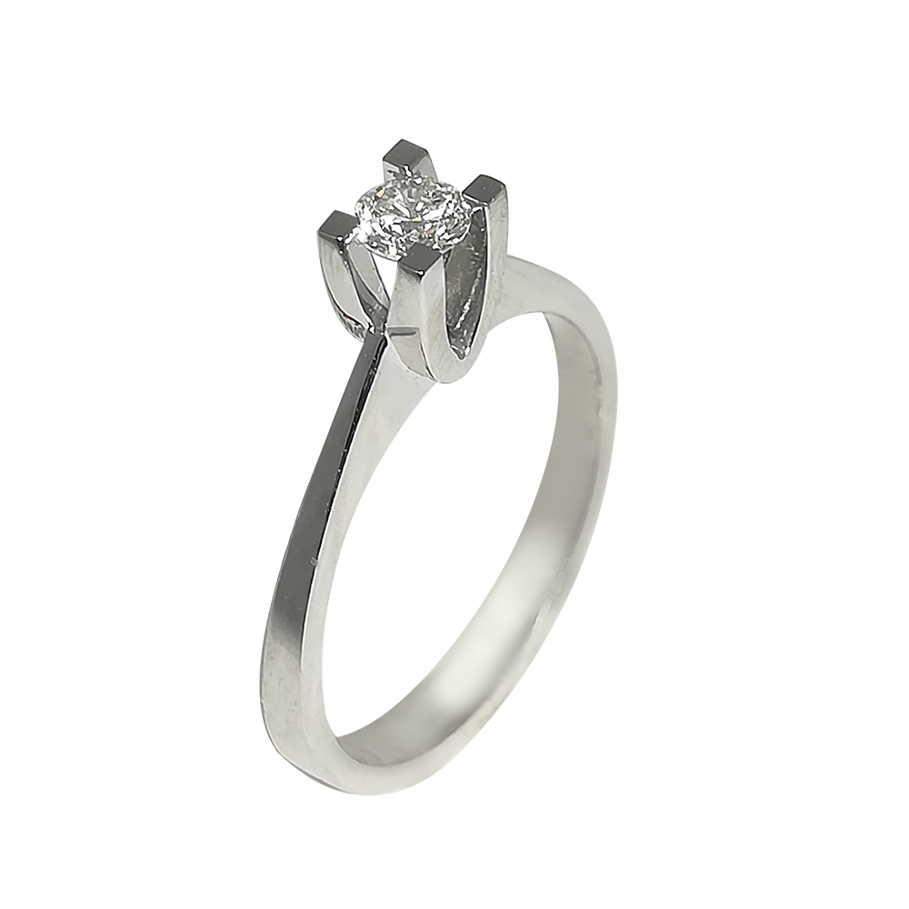 Λευκόχρυσο μονόπετρο 18 Καρατίων με διαμάντι.