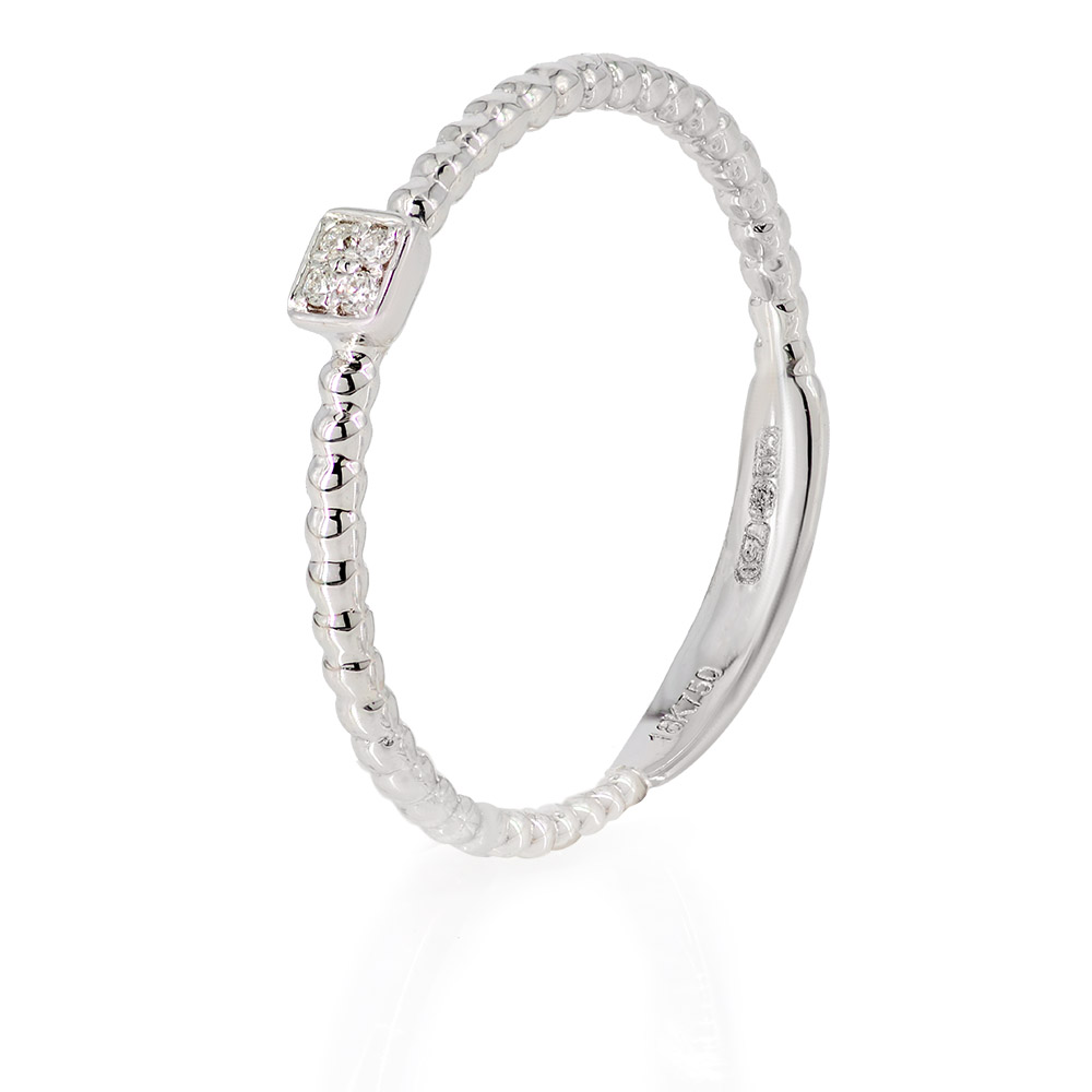 Λευκόχρυσο μονόπετρο 18 Καρατίων με διαμάντια και μοντέρνο σχεδιασμό.