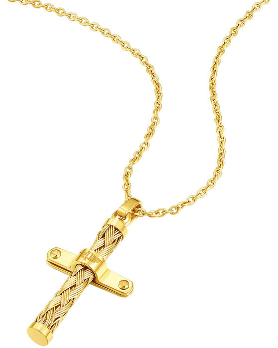 POLICE Crossed, Gold Stainless Steel Necklace PEAGN0032401