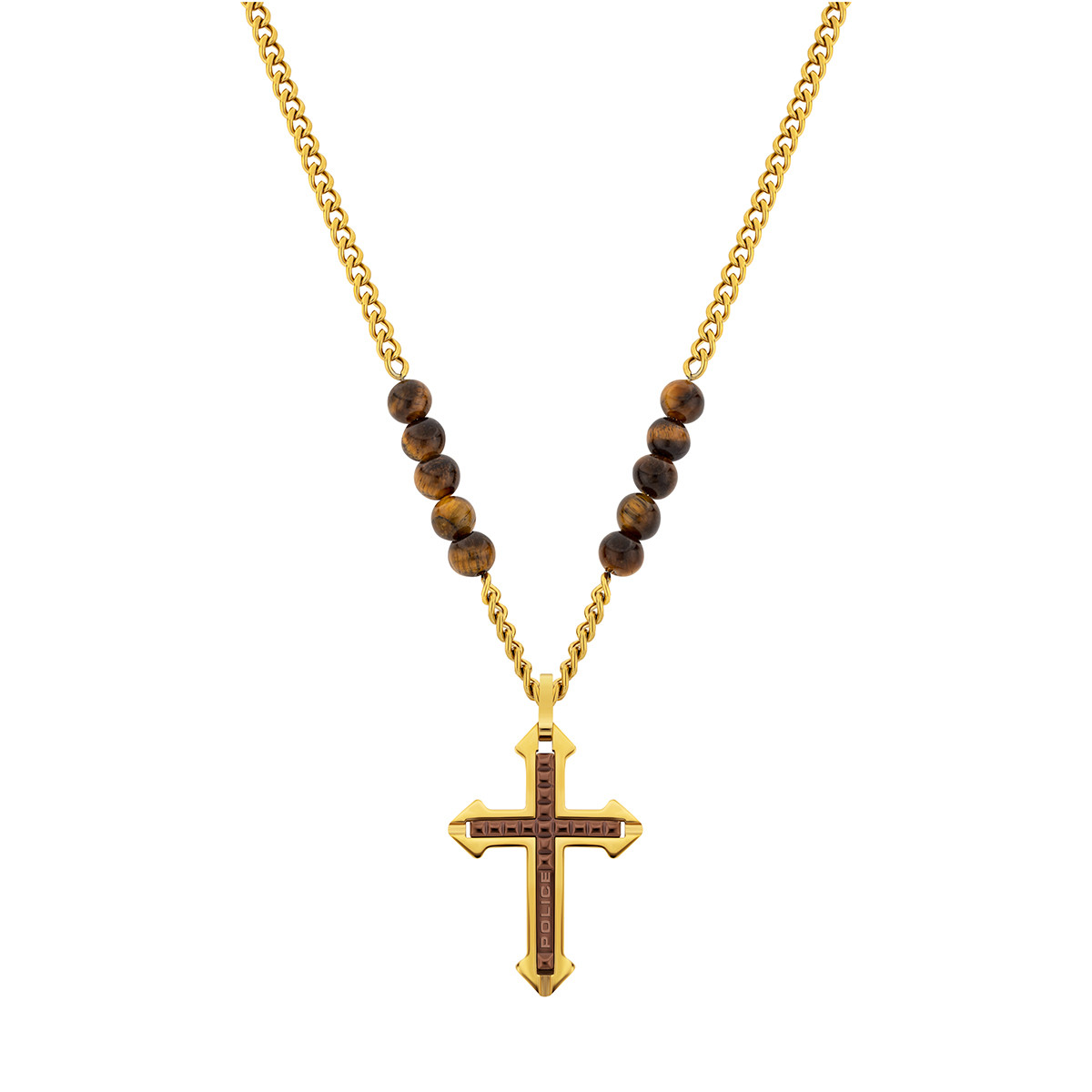 Police Cullin, Unisex Cross - Νecklace From Gold / Brown Stainless Steel PJ.26568PSG/02