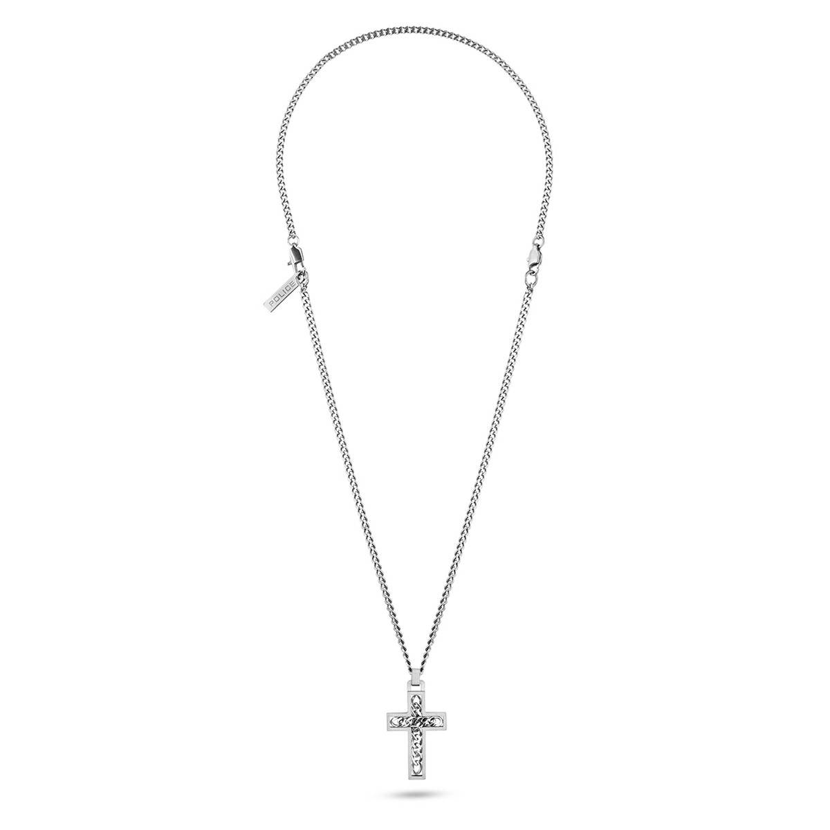 Police Crossed Out, Men's Cross - Νecklace From Silver Metal, PEAGN2211301