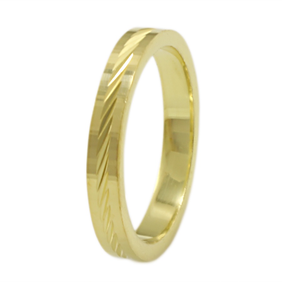 Ασημένια επιχρυσωμένη βέρα γάμου 925° με πλάτος 3mm σε ξεχωριστό σχέδιο με γυαλιστερά πλαϊνά και ένα χειροποίητο κανάλι στο κέντρο της με εκλεπτυσμένη επεξεργασία.