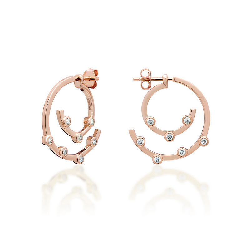 Ασημένια σκουλαρίκια, επιχρυσωμένα, με λευκές πέτρες ζιργκόν. H βασίλισσα πάντα κλέβει τις εντυπώσεις! Για αυτό η νέα συλλογή Jcou Queen's, ήρθε για να τις κλέψει και από εσάς!