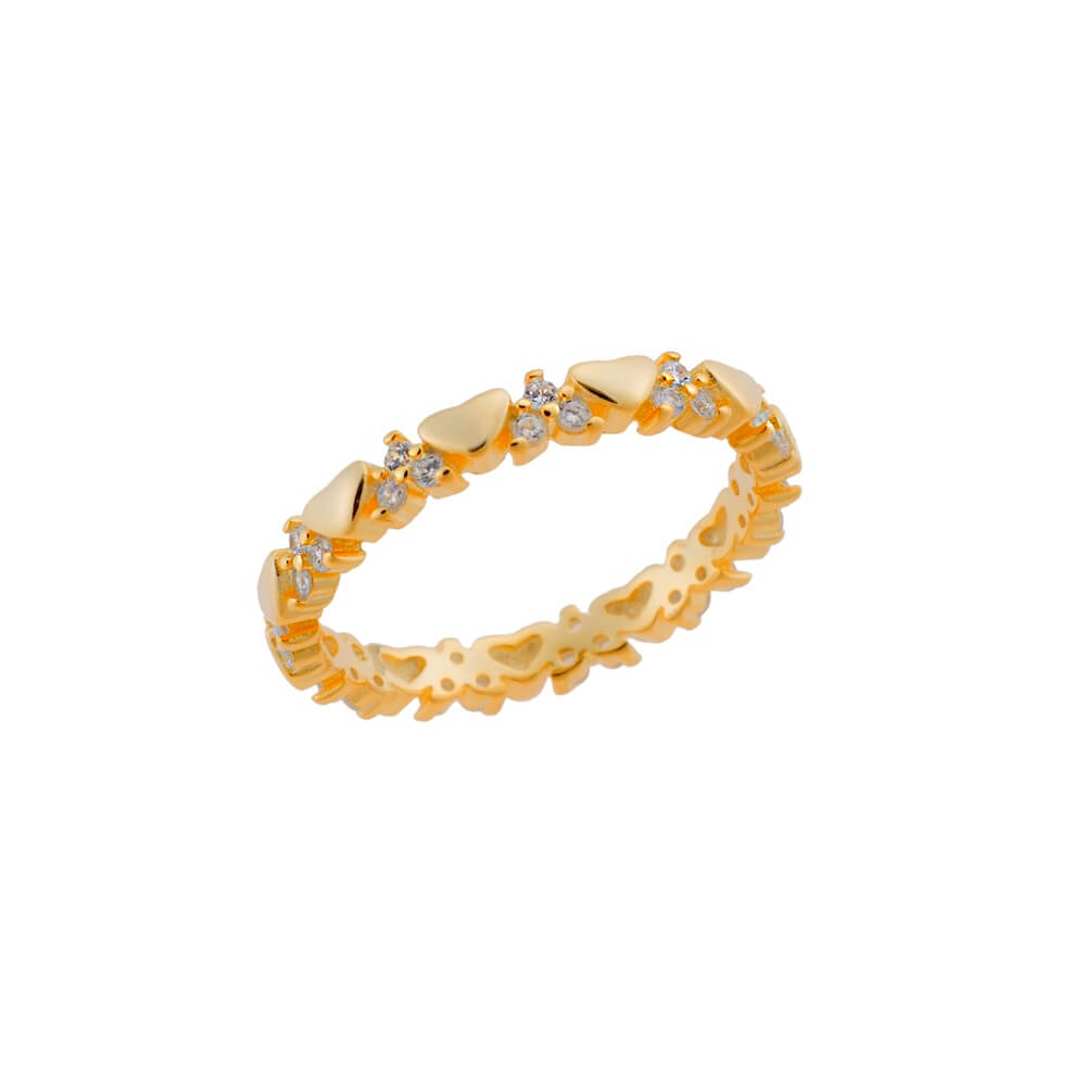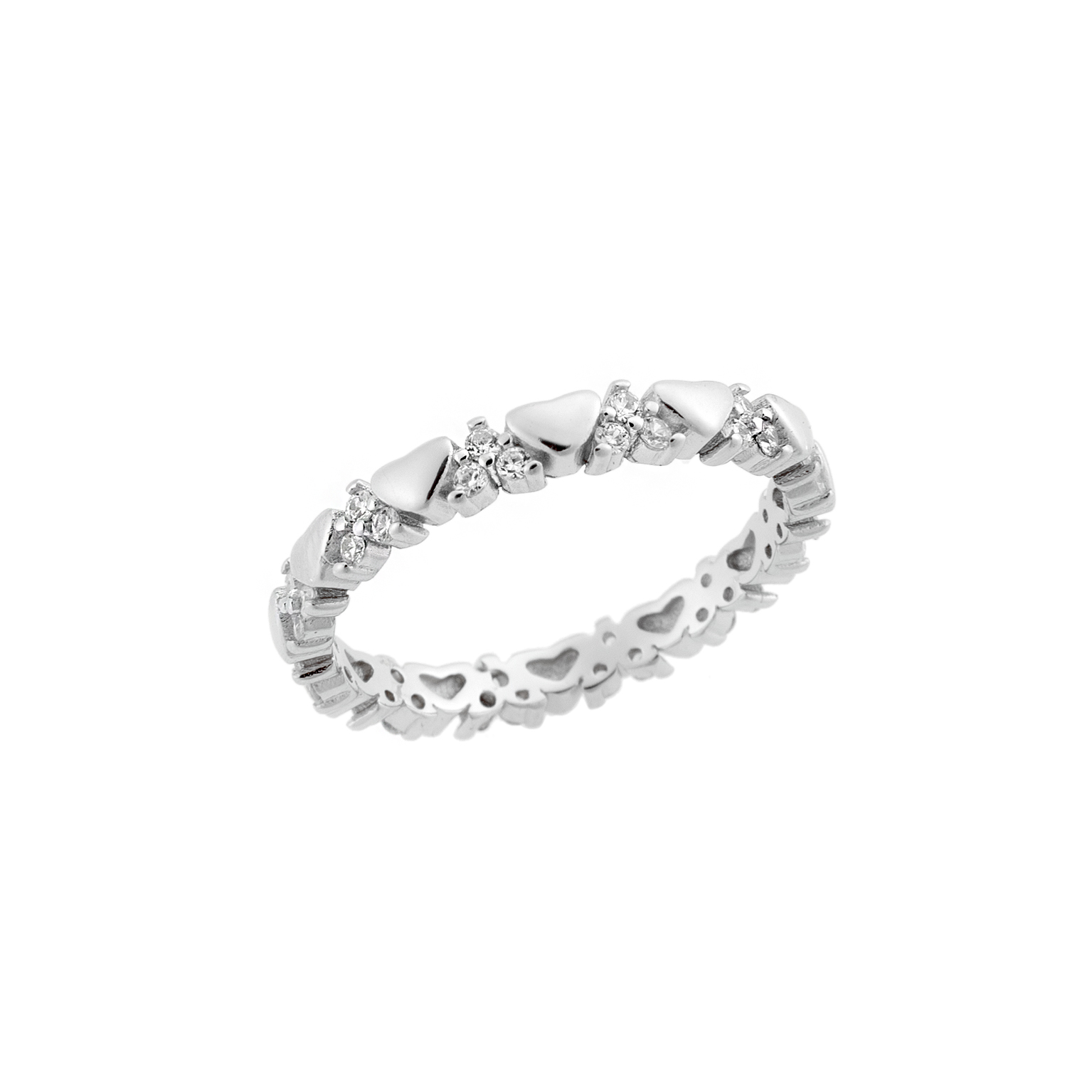 Ασημένιο δαχτυλίδι 925°, βεράκι, με καρδιές και λευκές πέτρες ζιργκόν.