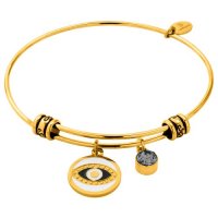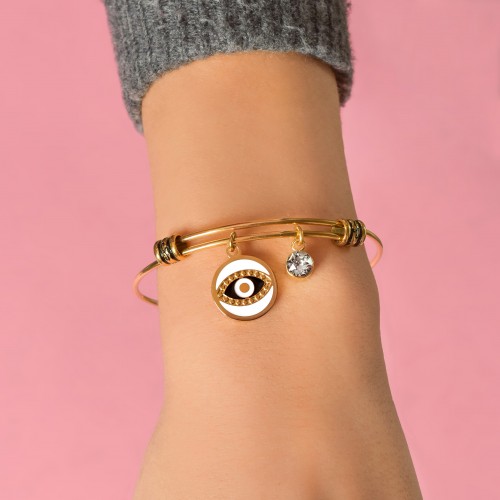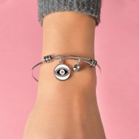 Χειροπέδα από ανοξείδωτο ατσάλι, με μάτι και μαύρη πέτρα,σε ασημί χρώμα από την εταιρεία Natalie Gersa.
